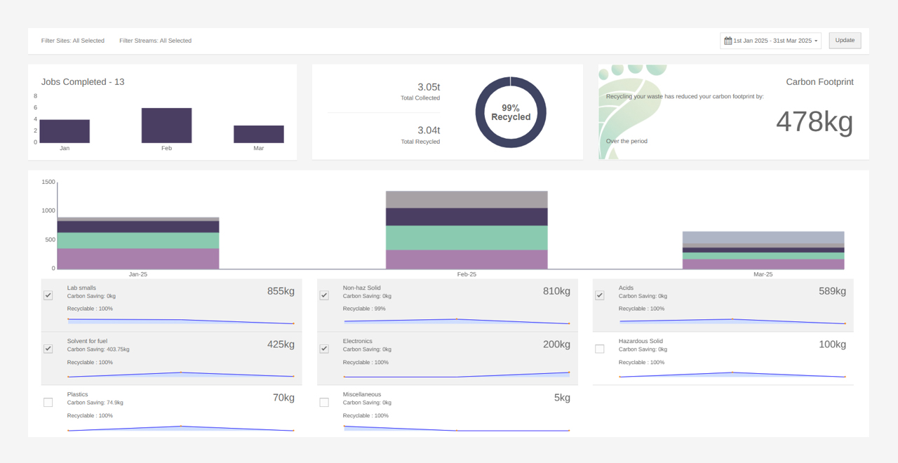 The solvents are used as “fuel” in the incinerator to replace raw materials such as gas and therefore are 100% “recycled”.